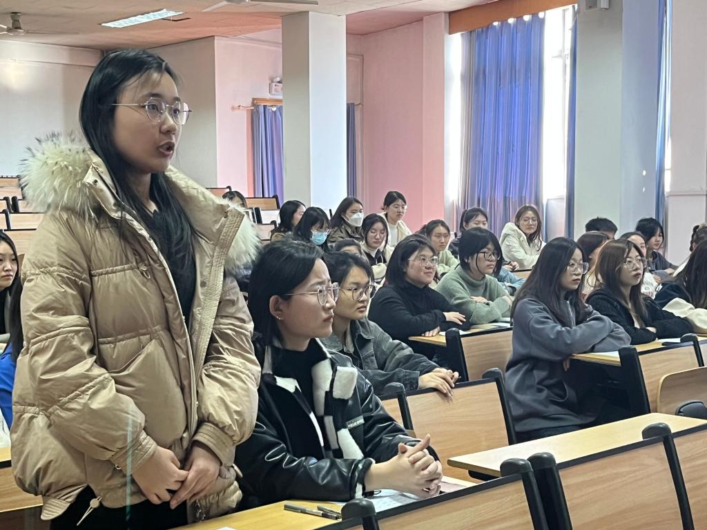 会上,主持人王梓扬介绍了本次学习交流会的目的、主题和意义。全体人员共同观看了时政微纪录片——《习近平与大学生朋友们》。随后,主讲人王迪带领同学们详细学习了《习近平与大学生朋友们》的系列访谈报道。在学习过程中,她提倡,要牢记习近平总书记的叮嘱,铭记他的温暖,以吾之青春,担国之重任。会议最后,主持人王梓扬总结了本次学习交流的成果,明确了大学生所肩负的使命,激励学生干部不负韶华、担当奋斗、行知合一,争做“爱国、励志、求真、力行”时代青年。