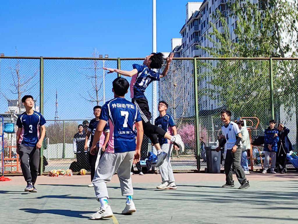 男排队员们以热情饱满的精神状态应战文学院、网络空间安全学院男排,三队各有优势,两场比赛精彩纷呈。上半场比赛,外院排球队在发球与进攻中率先夺得多分,队员们士气高涨、乘胜追击。比赛中后期,两队比分交替上升,双方相持不下、陷入胶着,最终文学院和网络空间安全学院分别以微弱的优势获胜。面对对方的强劲进攻,成人动漫