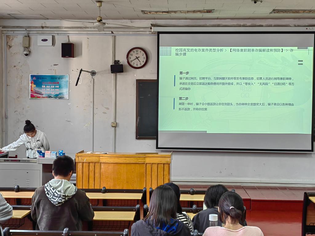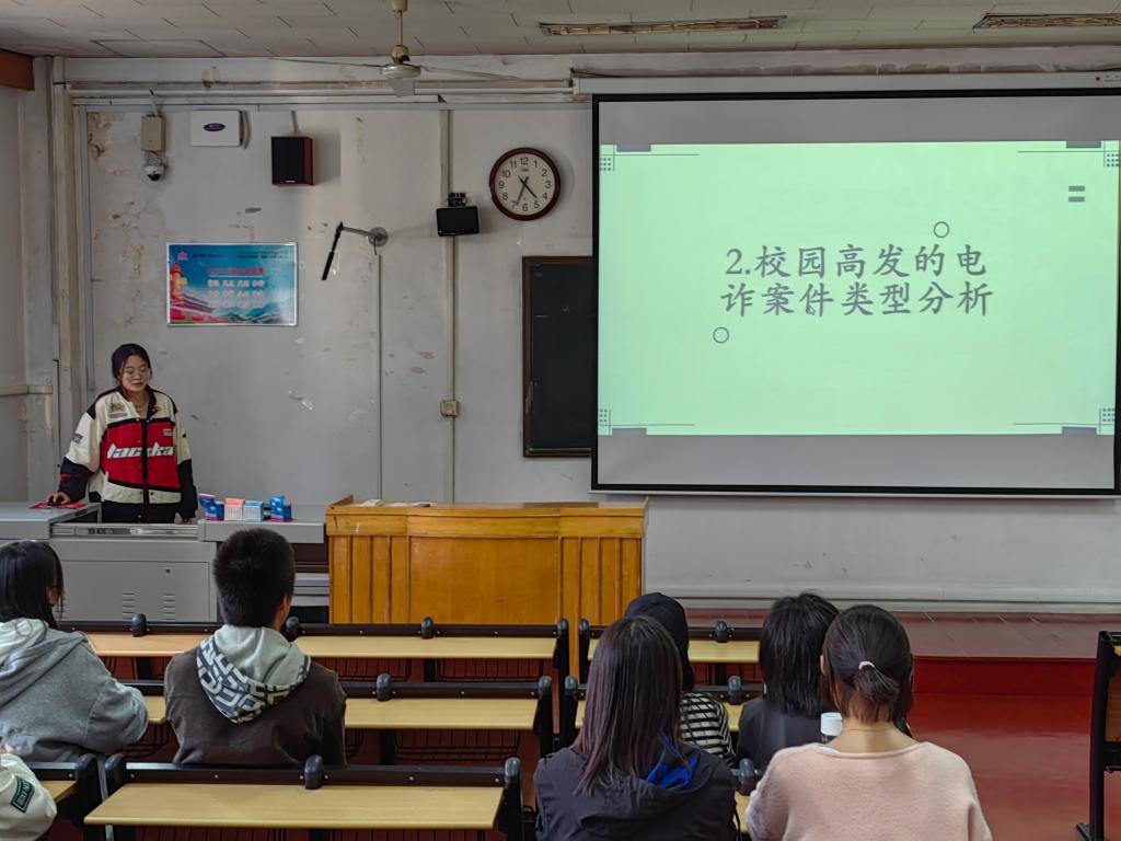 权益部开展“谨防电信诈骗,共建和谐校园”主题班会。2021级、2022级全体本科生参与本次主题班会。