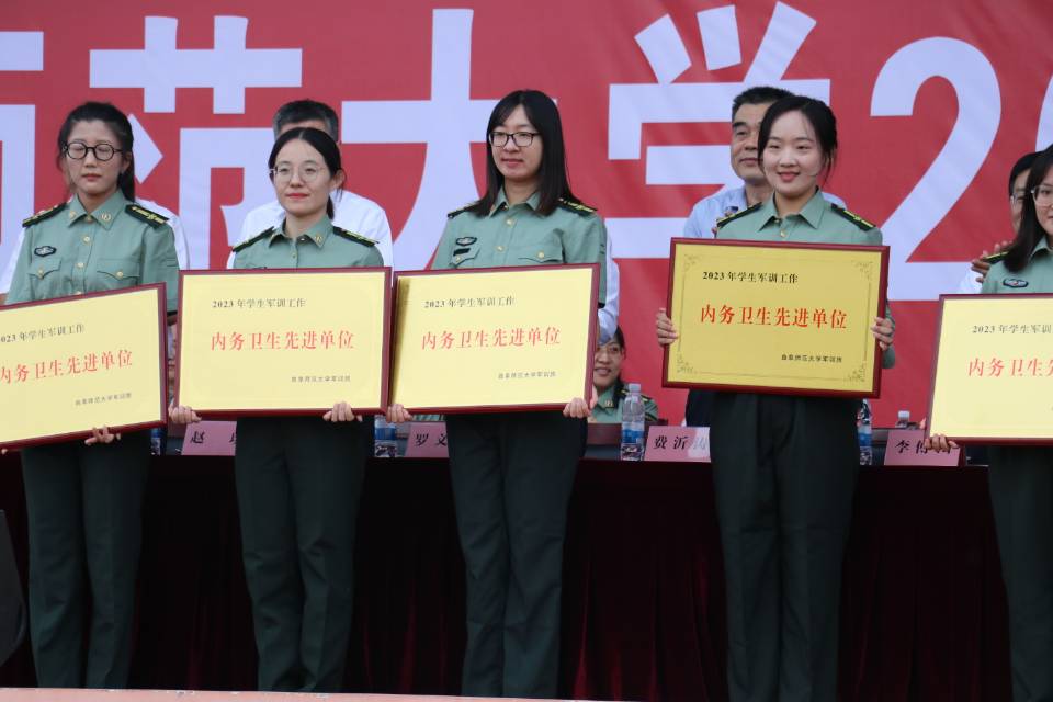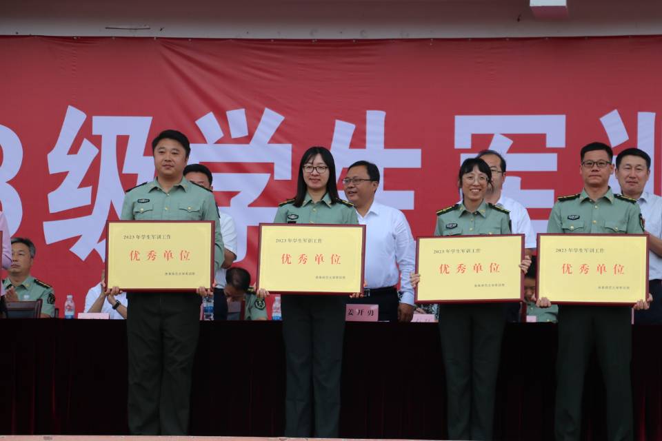 荣获学生军训工作优秀单位、内务先进单位,二营八连荣获优秀连队,2023级辅导员王婧娴获优秀指导员称号。
