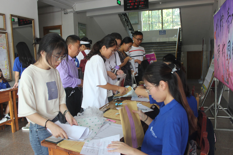 在新生报到现场,迎新工作如火如荼,各部门工作有条不紊。他们有的为新生扫描身份证,获取宿舍信息;有的将新生各类材料分门别类的收齐整理好;有的忙碌穿梭,热情地为新生及家长做好指引与帮助的工作……在此过程中,新生对师哥师姐的关心表示感谢,家长们也对工作人员一丝不苟的态度和热情周到的服务给予支持与肯定。