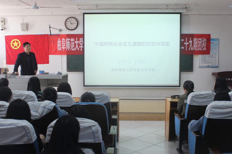 于2019年11月15日下午在外院301教室举办了以“中国特色社会主义道路的历史与现实”为主题的讲座,并邀请历史文化学院副院长吕厚轩担任本次讲座的主讲人。本次讲座由王旖旎老师主持,参训人员为2018级学生会各部门副部长和2019级全体班委。