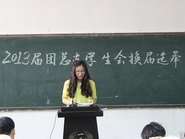 在201室召开“2013届团总支学生会换届选举大会”,党总支副书记曲凤东老师和团总支书记周瑞扬老师以及2012届主席团成员出席会议。