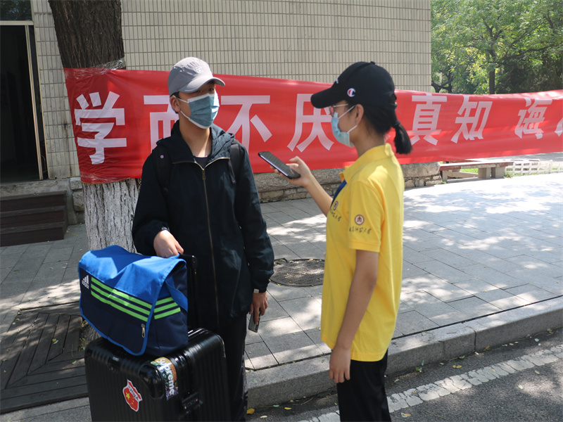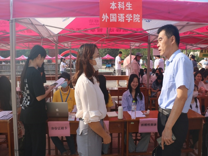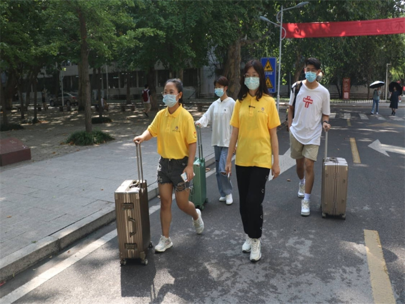 2020级学子身穿黄色文化衫,以最饱满的精神迎接各自的“二对二”新生,他们穿梭在校园各处,帮助新生搬运行李,引领新生到各报到点登记信息,解答新生的各种问题,充分展示了外院学子团结一致的良好精神风貌。此外,固定迎新点的工作人员也热情洋溢地为新生服务,有的认真整理材料核对信息,有的发放宿舍用品,有的手举相机记录迎新工作,一切报到程序都井然有序的进行着。2021级新生在采访中表示,志愿者们温暖的问候与贴心的服务让他们感到远赴他乡求学并不孤单,他们会带着希望前进,不辜负家人的期望。