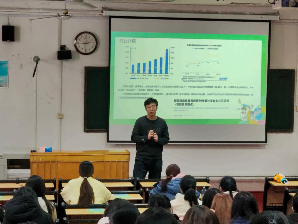本次招聘会分为三个版块,第一版块由大圣光华教育集团袭老师为在座外院学子播放往年招聘视频及成功就业毕业生的鼓励视频。袭老师以往届毕业生的就业故事为例,告诫同学们对未来的规划要和自己的实际情况相结合。第二个版块是现场互动答疑环节,同学们积极踊跃回答并获得相应小礼品。第三个版块是针对有意愿的应届毕业生进行现场投递简历,一对一面试。