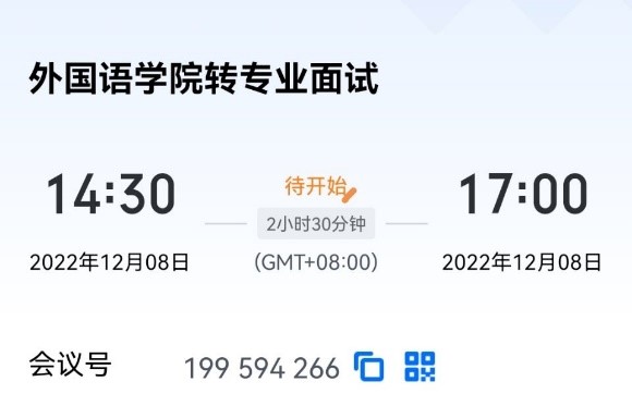 3. 所有符合条件的同学进行线上面试,按俄语、法语、英语专业顺序进行,拟转入英语专业的同学需要提前抽签确定顺序。面试时请在工作人员引导下提前扫描进入预定的腾讯会议室,面试时须打开摄像头。