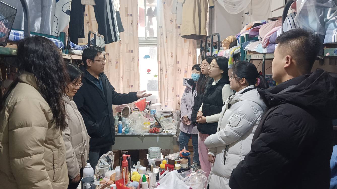 ,学院党委副书记王作茂一起带领团委副书记张晓、辅导员赵文彬、王伟、王仁杰走进学生宿舍、教室和食堂等场所开展一系列工作。