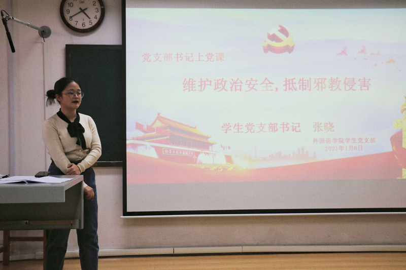学生党支部于系楼301会议室开展“支部书记上党课---维护政治安全,抵制邪教侵害”的党课学习活动。本次党课由成人动漫