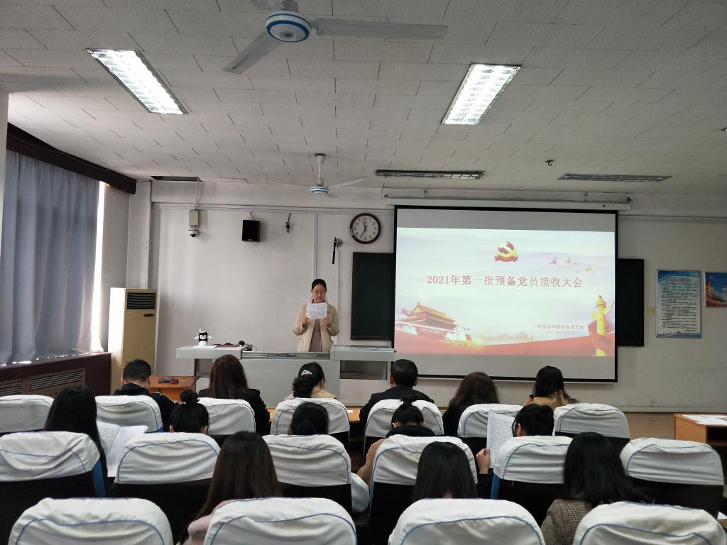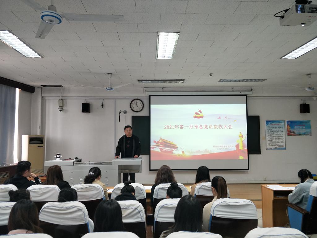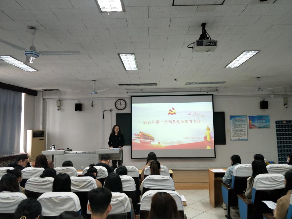 学生党支部于外语楼301召开2021年第一批预备党员接收大会。本次大会由成人动漫