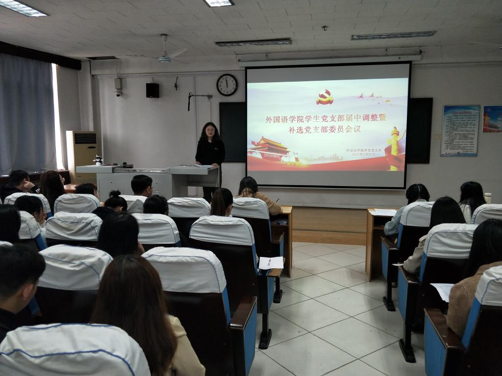 学生党支部召开党员大会,进行学生党支部届中调整暨补选党支部委员会议,会议由成人动漫