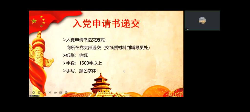 学生党支部于线上举办了2022级新生入党启蒙大会。会议邀请学生党支部副书记王嘉艺主讲,2022级辅导员赵文彬主持,2022级全体本科生和研究生参加。