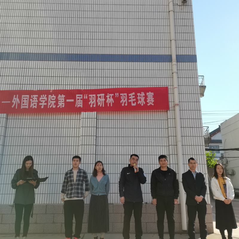 第一届‘羽研杯’羽毛球赛”开幕式。出席本次开幕式的有学院党委书记费沂涛老师,院长助理邢加新老师,学院教工党支部委员伊纪昌老师,研究生辅导员毕丽晓老师,研究生会副主席王婉婉和比赛总裁判长王仁杰。此次开幕式由研究生会文体部部长田立辉主持,由成人动漫